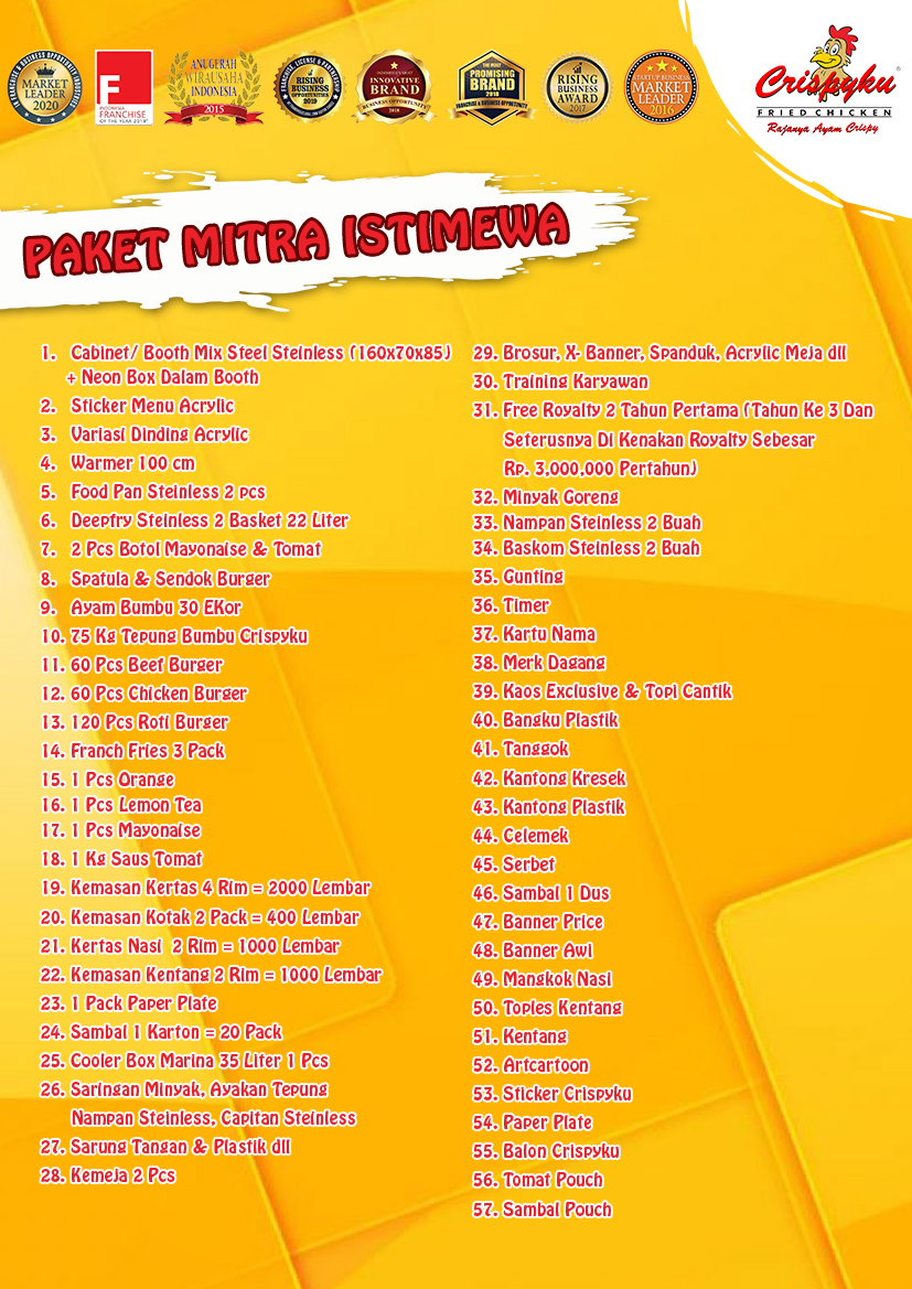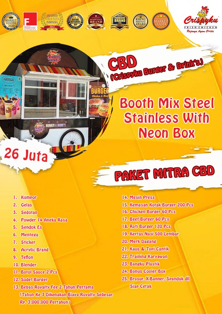 Apabila Anda tertarik dengan Bisnis Usaha Waralaba CBD (Crispyku Burger & Drink’s) atau Crispyku Fried Chicken silahkan hubungi no 0815 9979282 atau kunjungi website resmi kami di www.waralaba-friedchicken.com / www.crispyku.com
