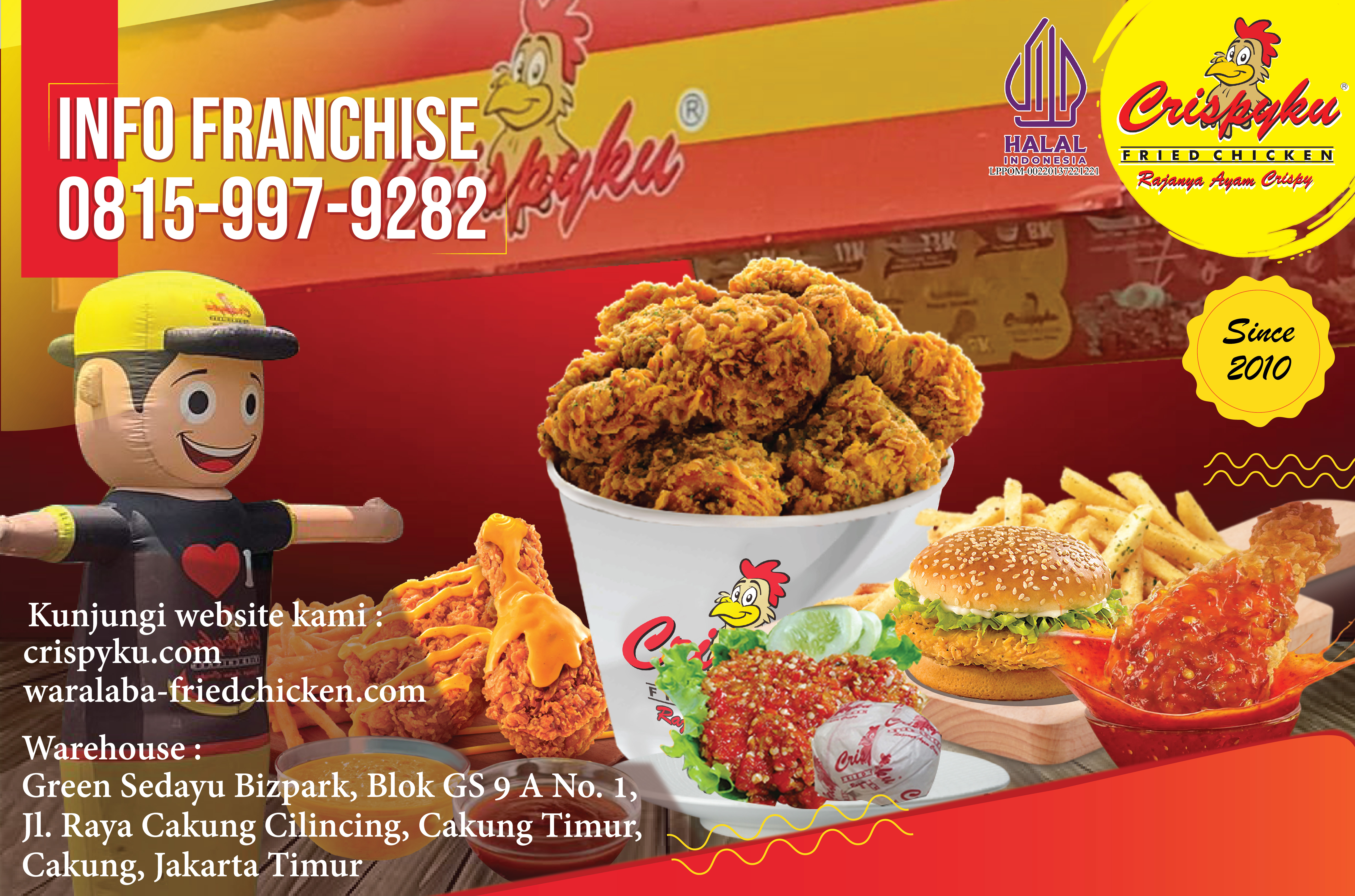 Informasi lengkap tentang Crispyku Fried Chicken dan cara memulai waralaba bisa didapatkan melalui website Crispyku dan Waralaba Fried Chicken Crispyku. Jangan lupa, ikuti juga media sosial (medsos) Instagram @Crispyku, Facebook Crispyku dan YouTube Channel Crispyku. Apakah tertarik menjadi mitra Crispyku? Tunggu apa lagi, segera hubungi medsos maupun WhatsApp tim Crispyku Pusat bagi Anda yang ingin berdiskusi lebih lanjut.