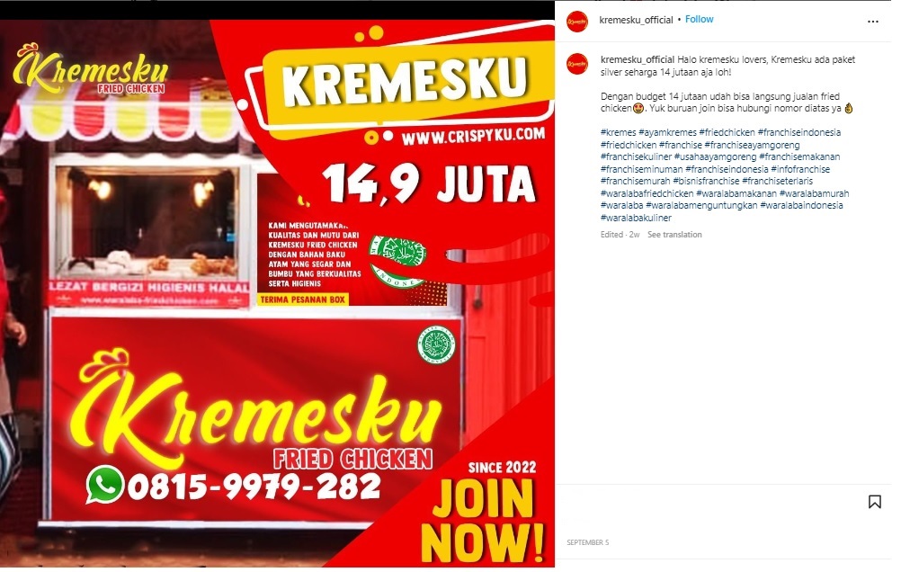 Kremesku Fried Chicken Berdiri sejak tahun 2020