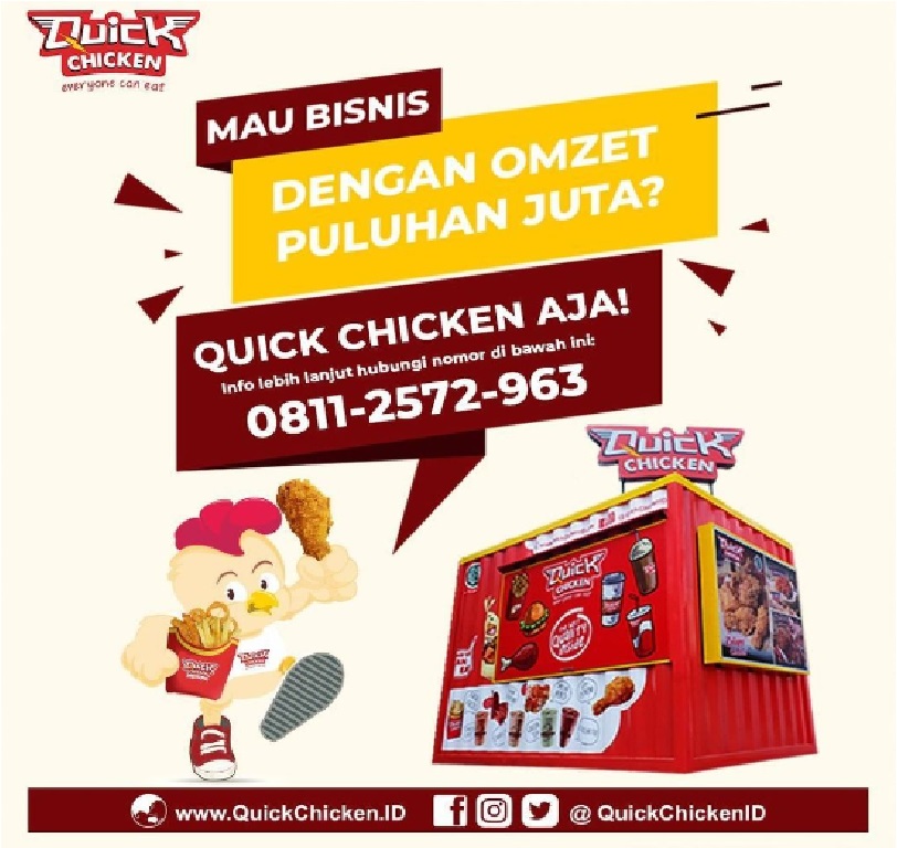 Potensi pasar dalam konsumsi fried chicken di Indonesia cukup besar. Quick Chicken dapat dipercaya untuk membantu bisnis franchise kuliner Anda menjadi bisnis yang aman dan menjanjikan.