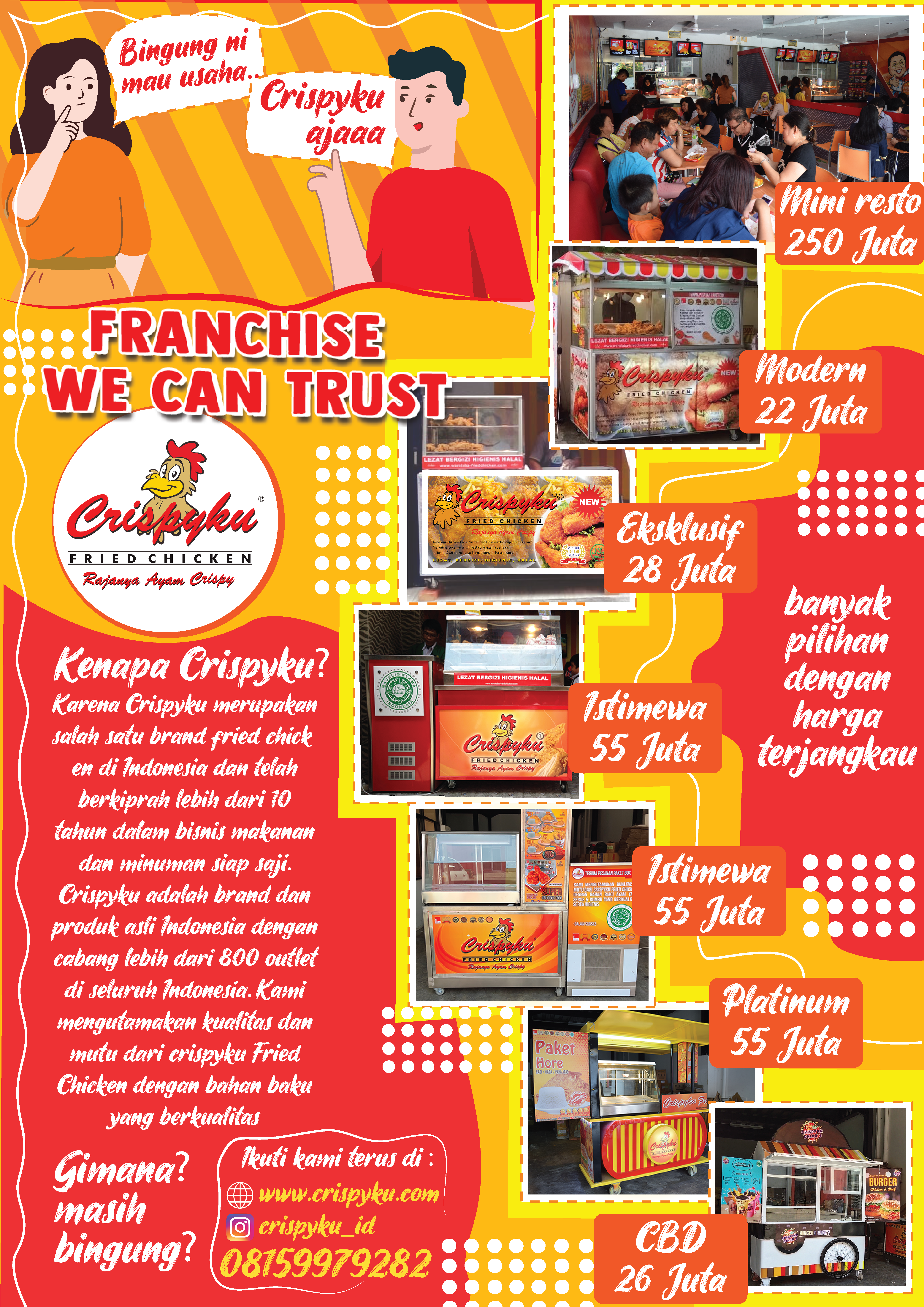 Jika kamu ingin membeli franchise Crispyku Franchise yang paling terpercaya : silakan cek www.waralaba-friedchicken.com / www.crispyku.com