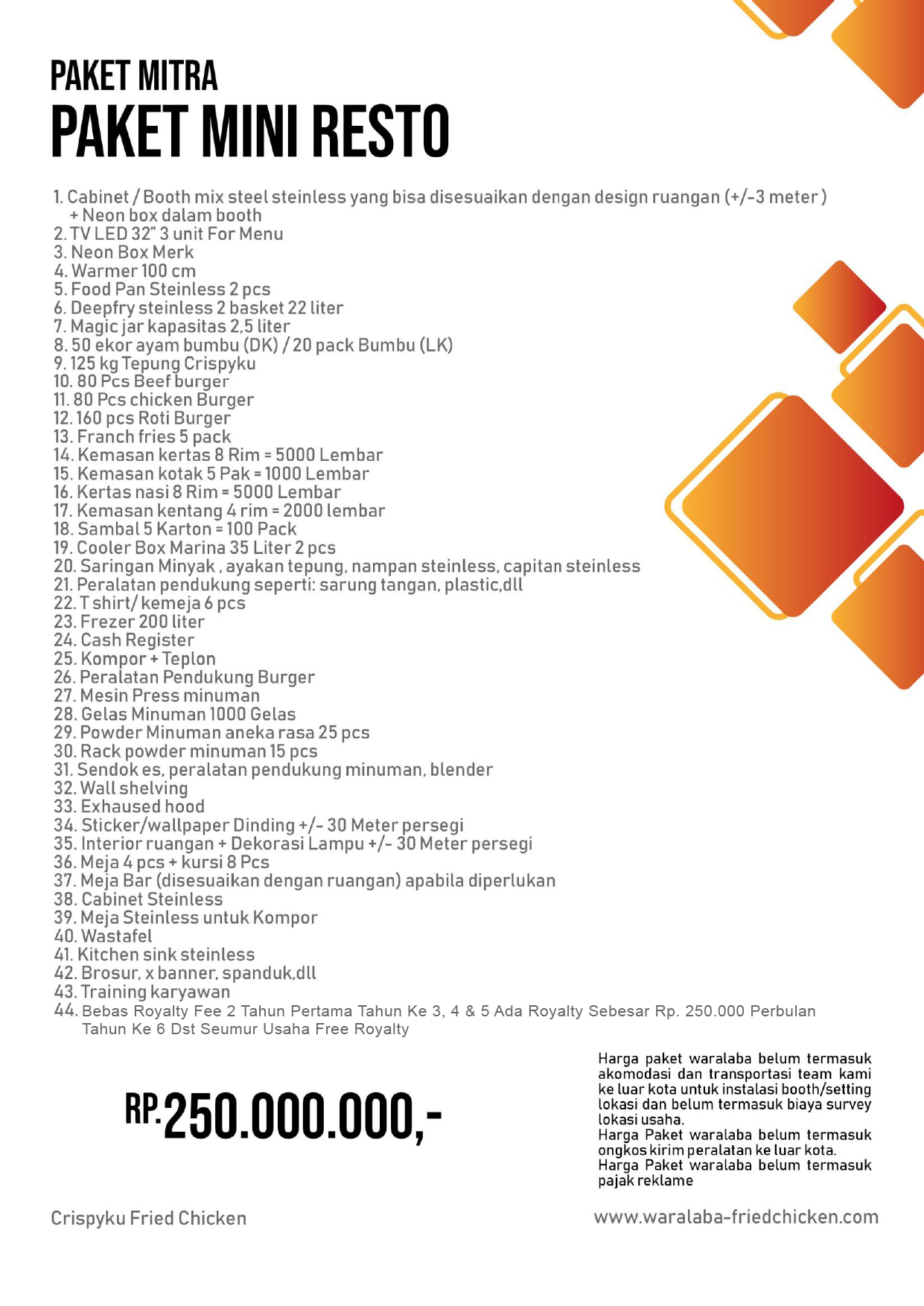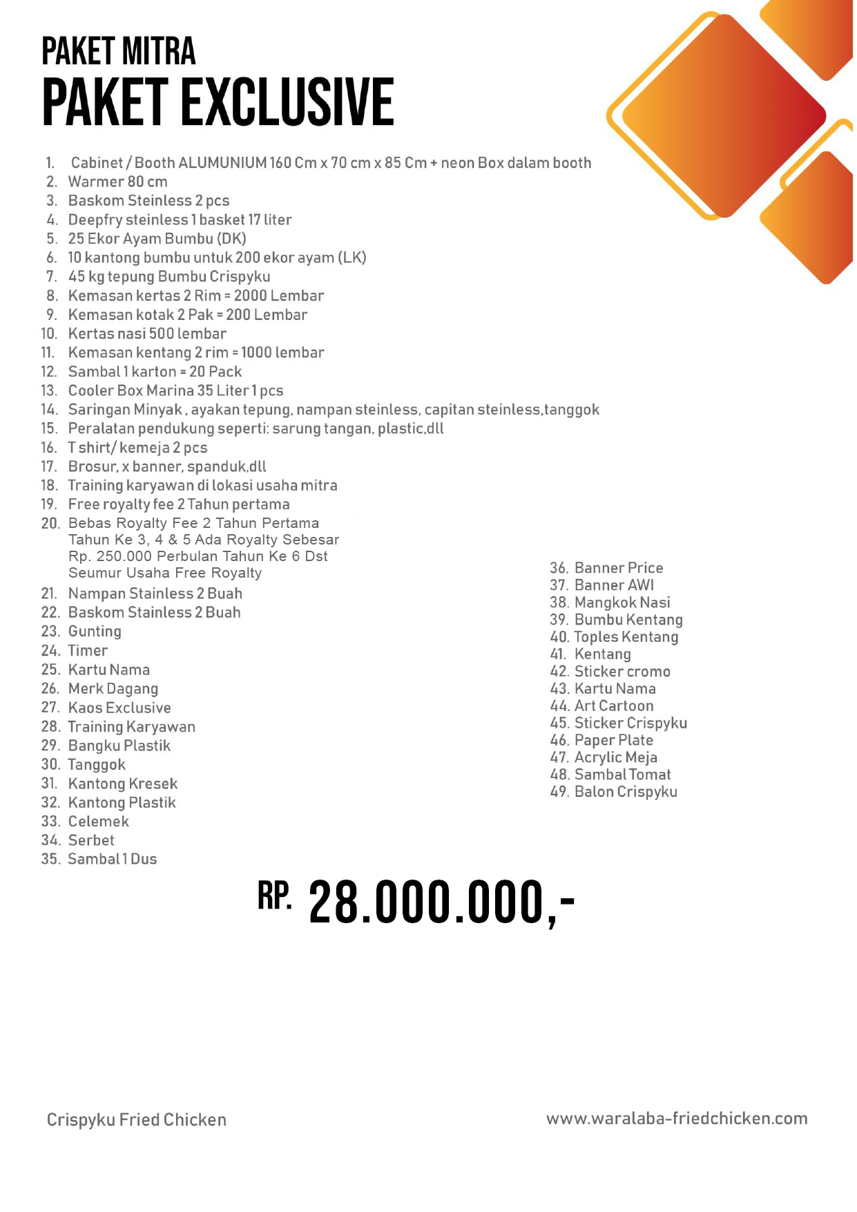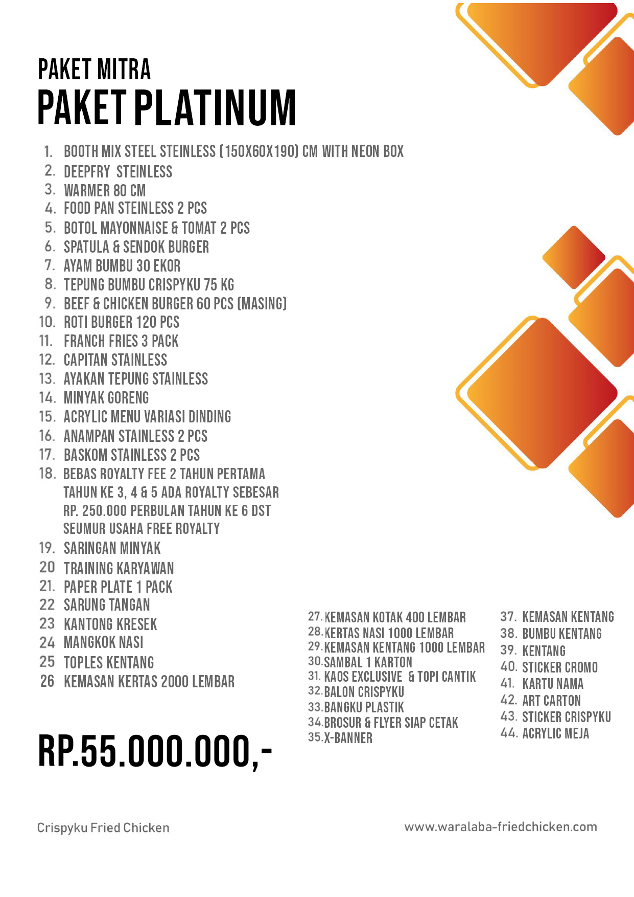 Apabila Anda tertarik dengan Bisnis Usaha Waralaba CBD (Crispyku Burger & Drink’s) atau Crispyku Fried Chicken silahkan hubungi no 0815 9979282 atau kunjungi website resmi kami di www.waralaba-friedchicken.com / www.crispyku.com