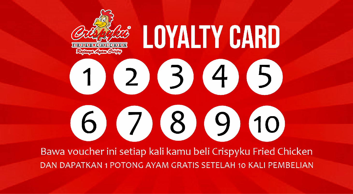Program loyalitas adalah cara yang efektif untuk menjaga pelanggan tetap setia dan meningkatkan frekuensi pembelian mereka. Kami di Crispyku Fried Chicken menyediakan berbagai macam program loyalitas yang memberikan keuntungan bagi pelanggan yang sering membeli produk kami. Tawarkan Diskon dan Reward Berikan diskon atau hadiah untuk pelanggan yang sering berbelanja atau yang mereferensikan teman.